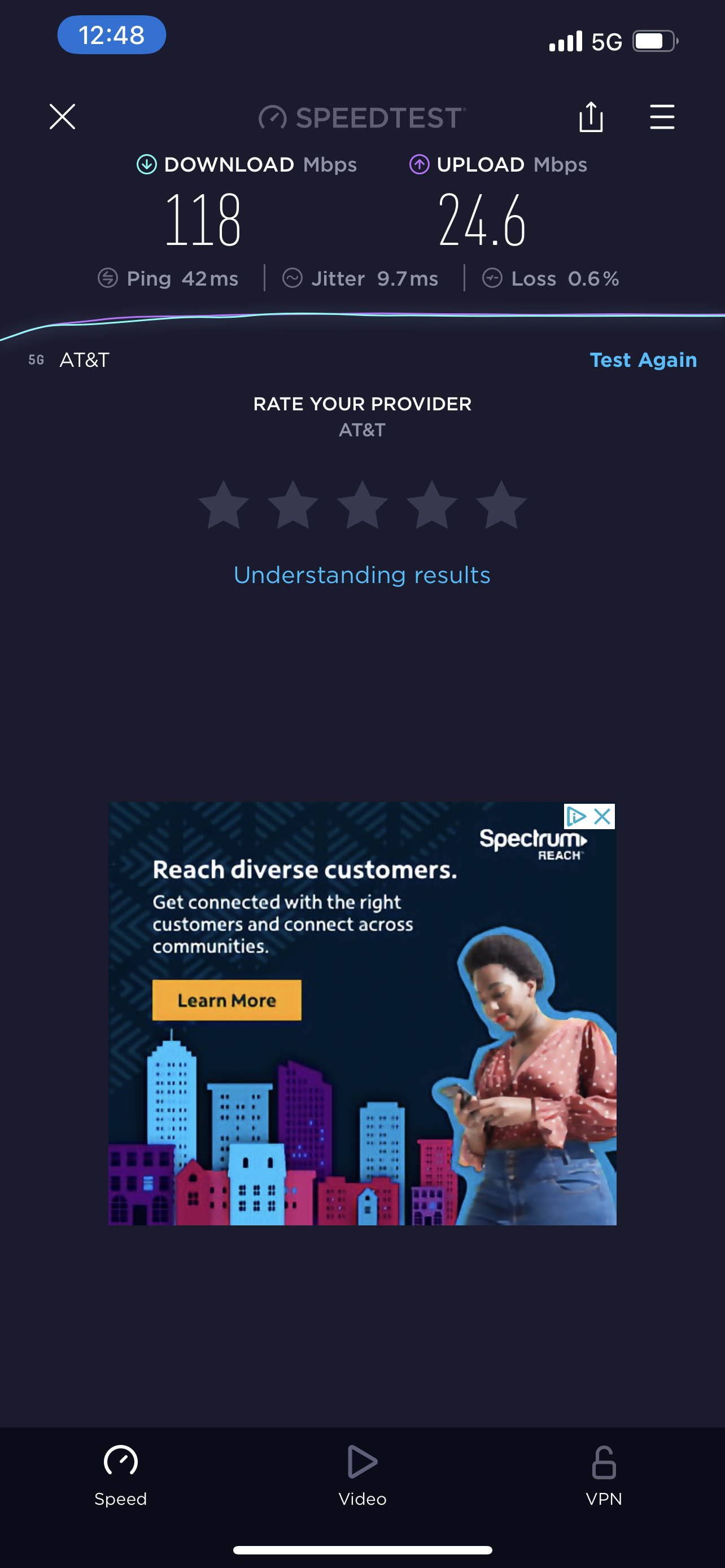 these screenshots shows the iPad (slow) and the iPhone’s Speedtest results.