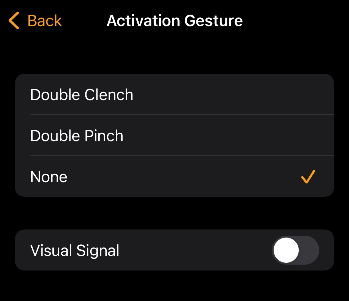 Go to Watch App (on iPhone) > Settings > Accessibility > Assistive Touch > Hand Gestures > Activation Gesture > Visual Signal