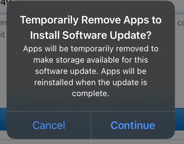 I can’t download ios 15 because when I want download it and click it told me temporarily remove apps and install software update