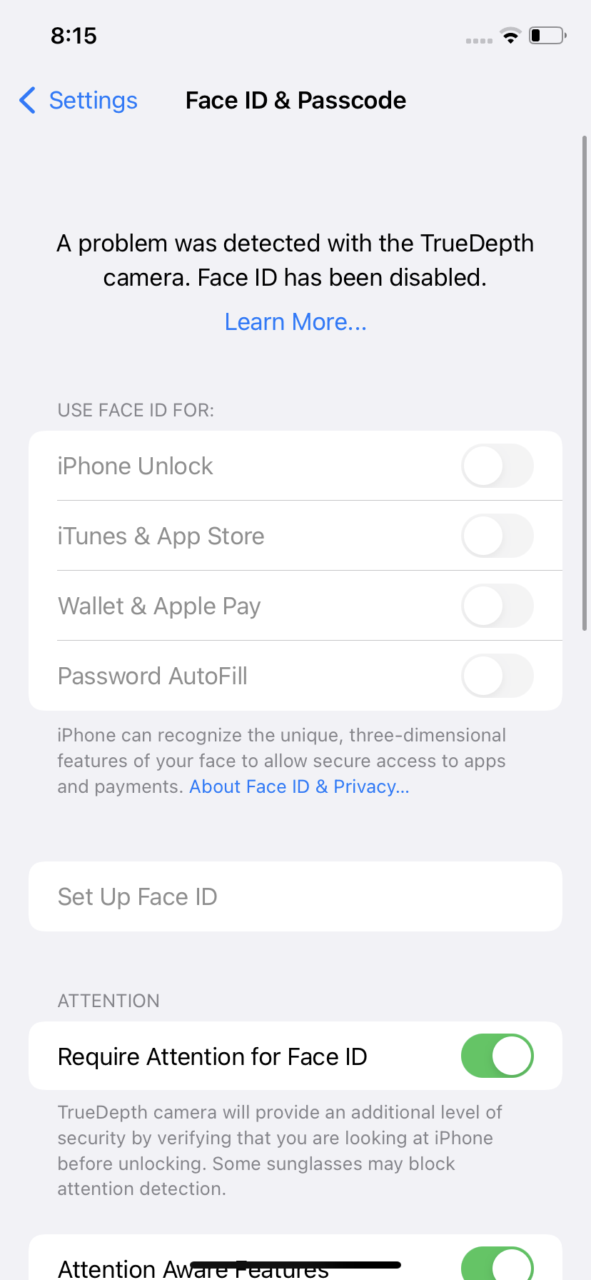 A problem was detected with the TrueDepth camera in my Face ID