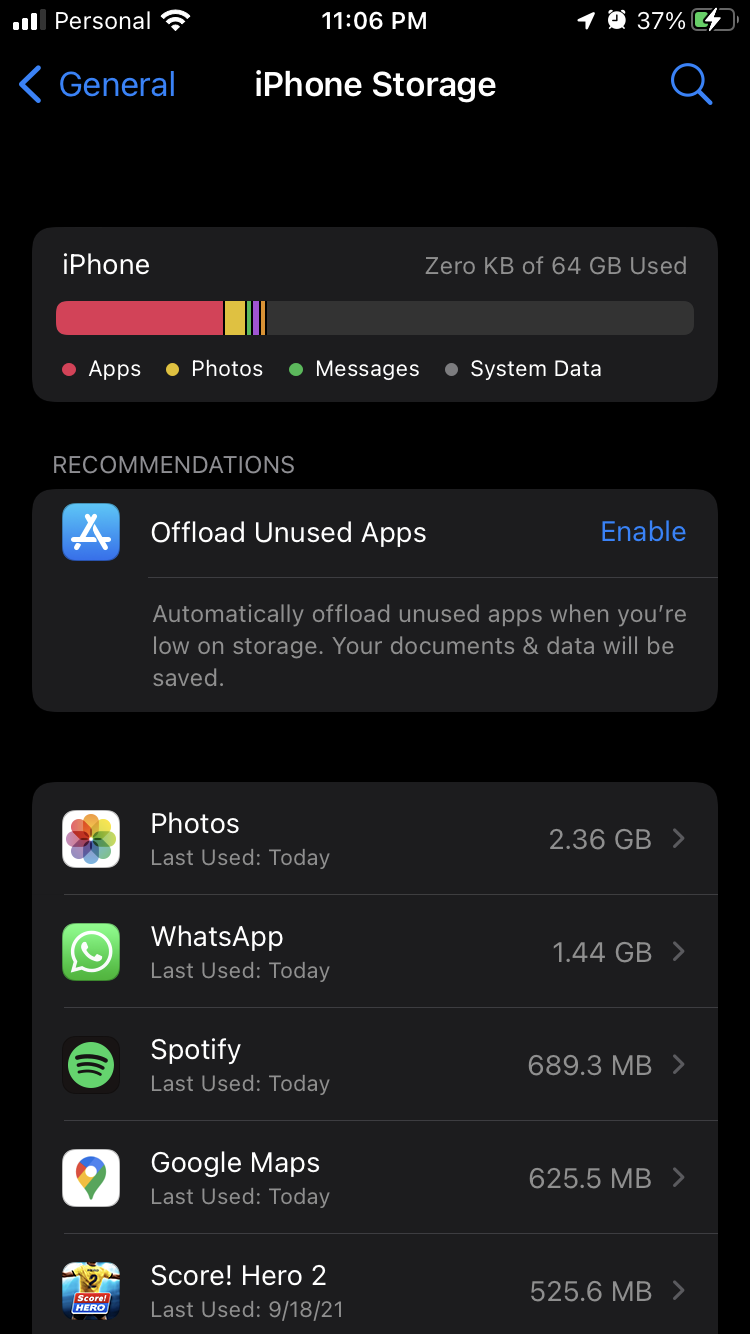 I have an iPhone SE (2020) running iOS 15.0. Ever since the update, i can no longer see the amount of storage being used in settings, however I can still see the apps in order and how much storage each one is occupying. I suspect this is a settings bug, the reason being that when I enter Spotify’s (or any other app with a storage section) storage section, I can see the total amount of storage being used.