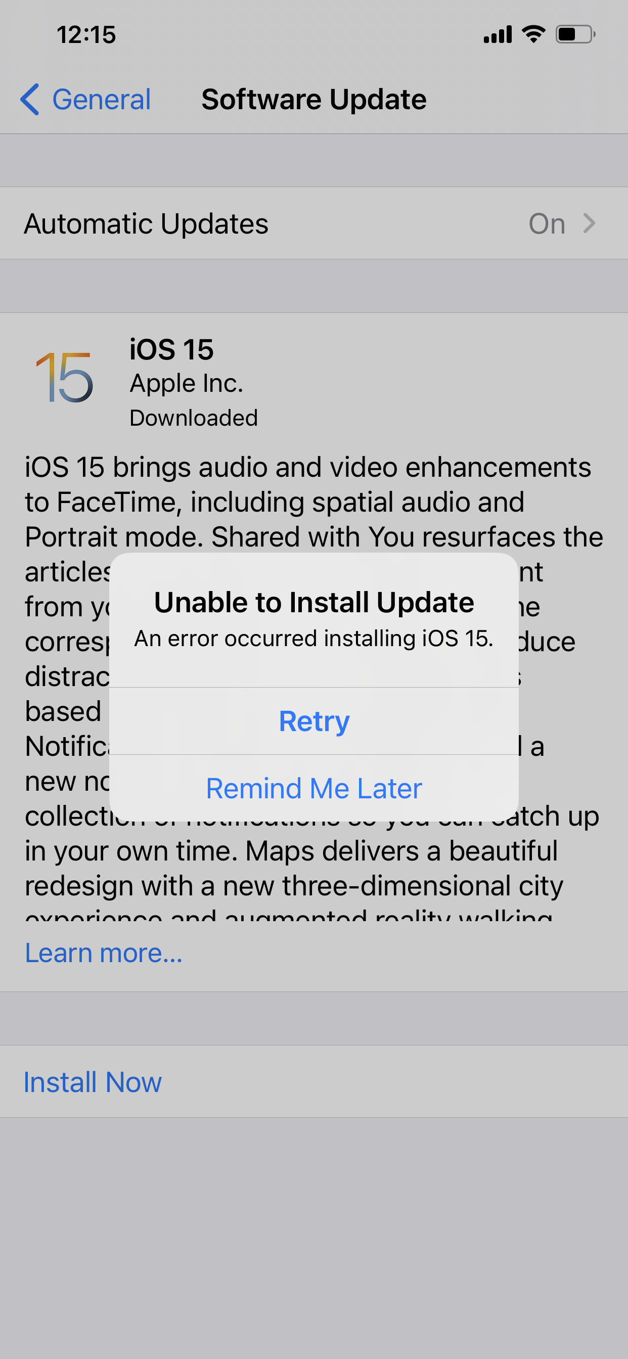 I’m unable to install the new update to IOS 15 it’s saying there was an error. Pls fingers this out
