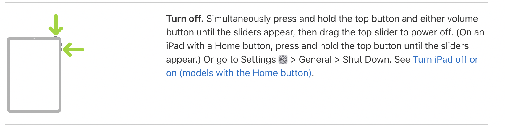 Just received my new iPad Mini 6. Slight problem, unlike previous models (my old iPad Mini 5 for example) this new one will not power down. I hold down the power button, but it never presents the slider bar so I cannot turn it off. I've wasted an hour searching online for a way around this problem but apparently no one else has attempted this. I'd really like to turn it off before installing the SIM card; that's the way I've always done it.
