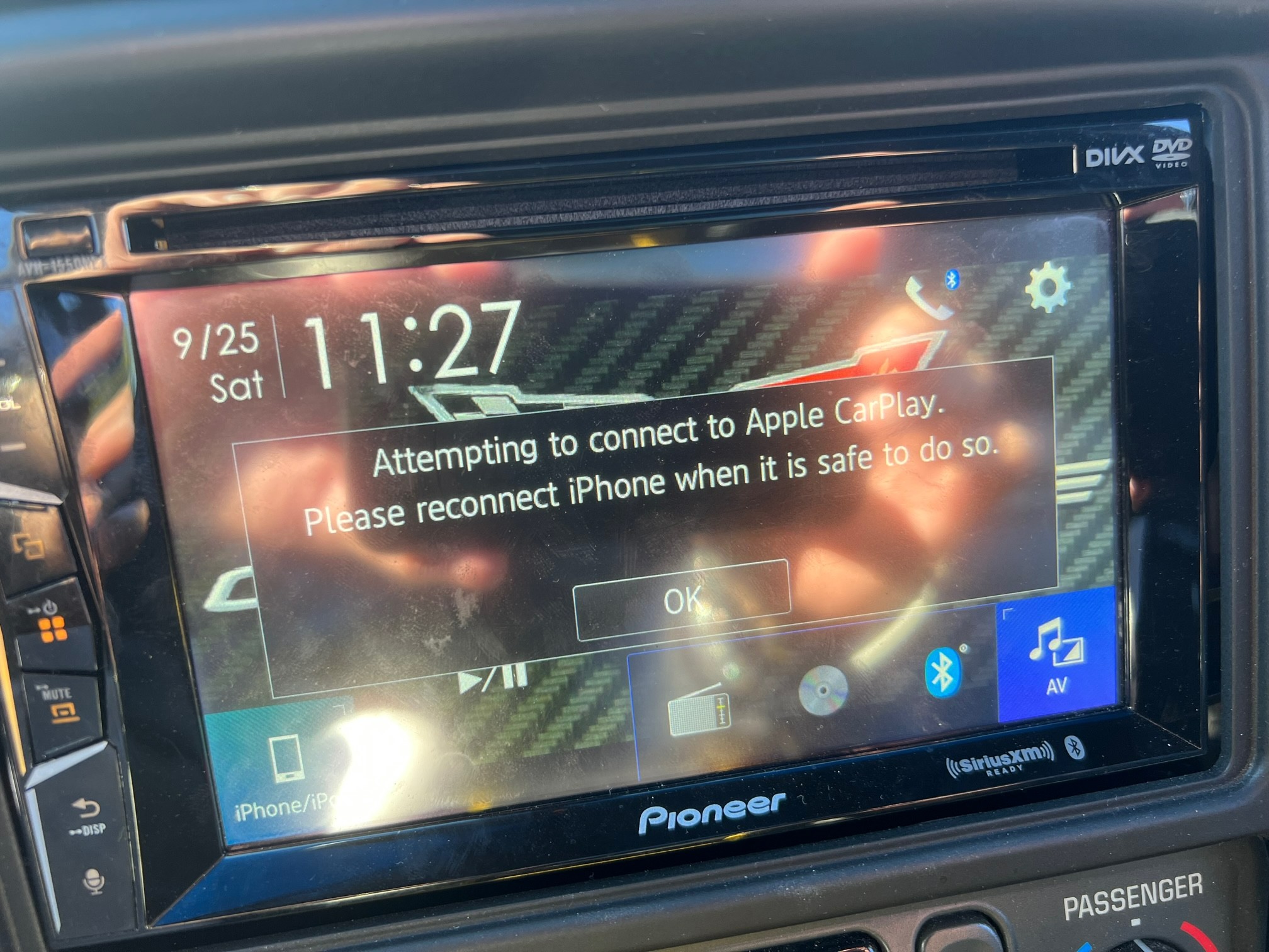I disconnect the cord from iPhone 13 PM the Headunit plays via Bluetooth only. Strange I get this message.. see photo. So no Carplay just Bluetooth. I get calls via Bluetooth at this time. I rebooted and reset the head unit and iPhone. I have the latest Firmware from Pioneer.