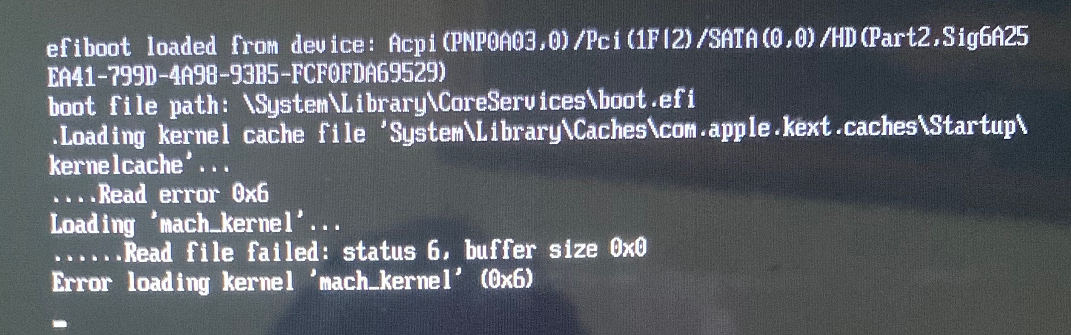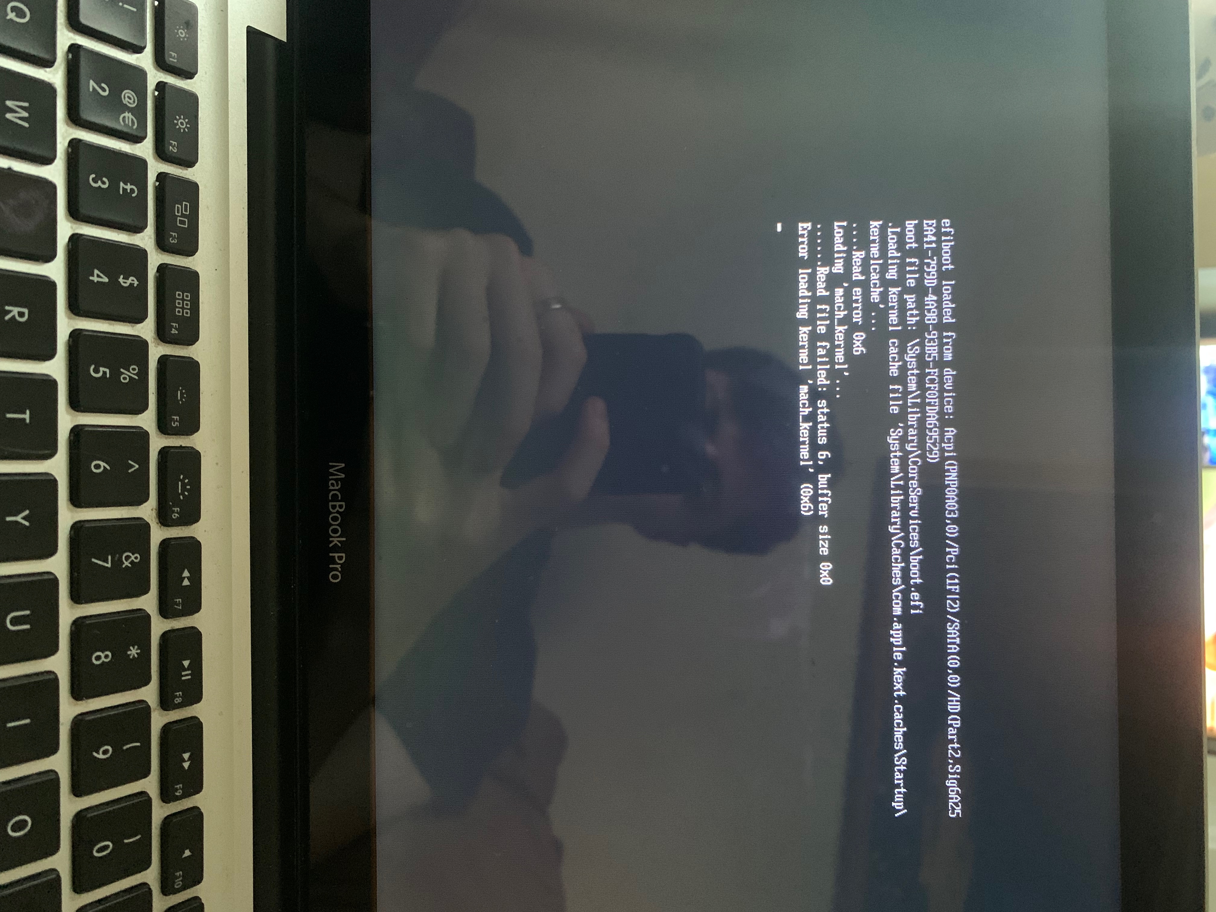 MacBook Pro won’t boot up and shows multiple errors i.e circle with a line through it and folder with a question mark. In single user mode and safe mode I’m greeted with error loading kernel 0x6. Tried different hard drives and SATA cables but no luck.