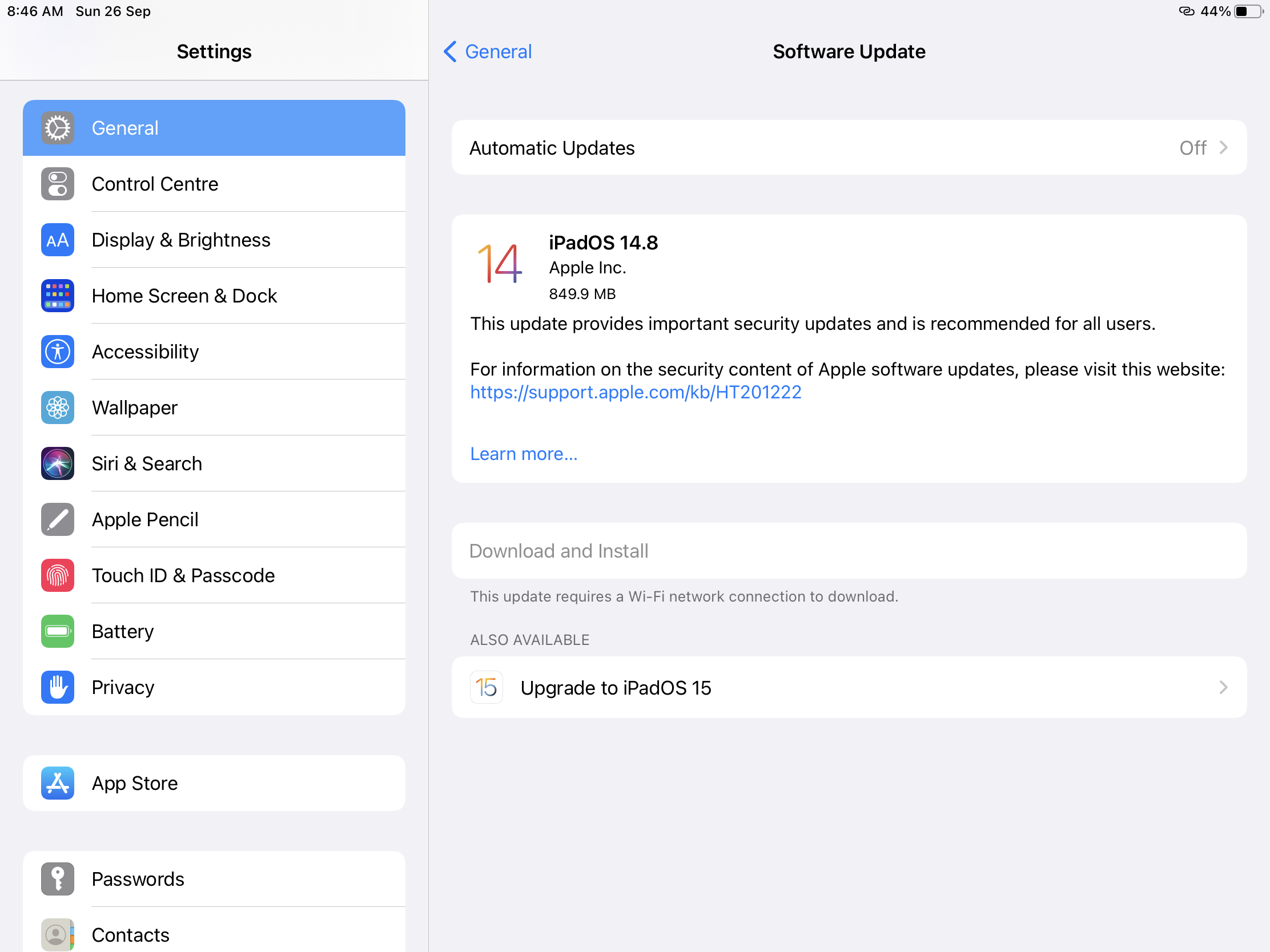 And then go back to the update option and you should be able to update your iPadOS. I would also recommend turning on the "Automatic updates" option as this ensures that your iPad gets the latest security and feature updates from Apple