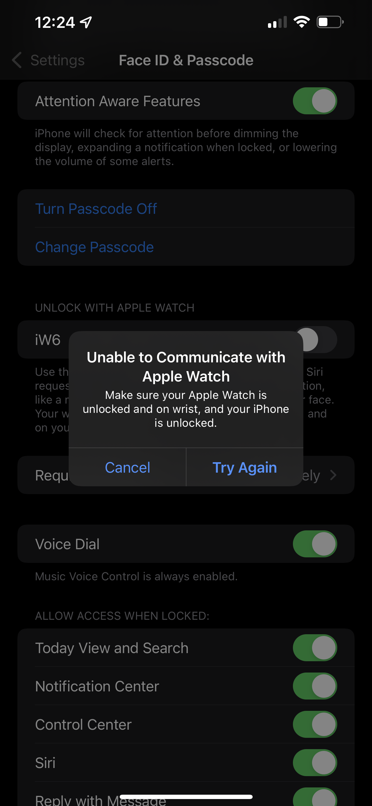 ‘Unlock with Apple Watch’ not working with iPhone 13. It was working fine with iPhone 12. When I try to enable the option, I get an error saying ‘Unable to communicate with Apple Watch’. (Screenshot attached).