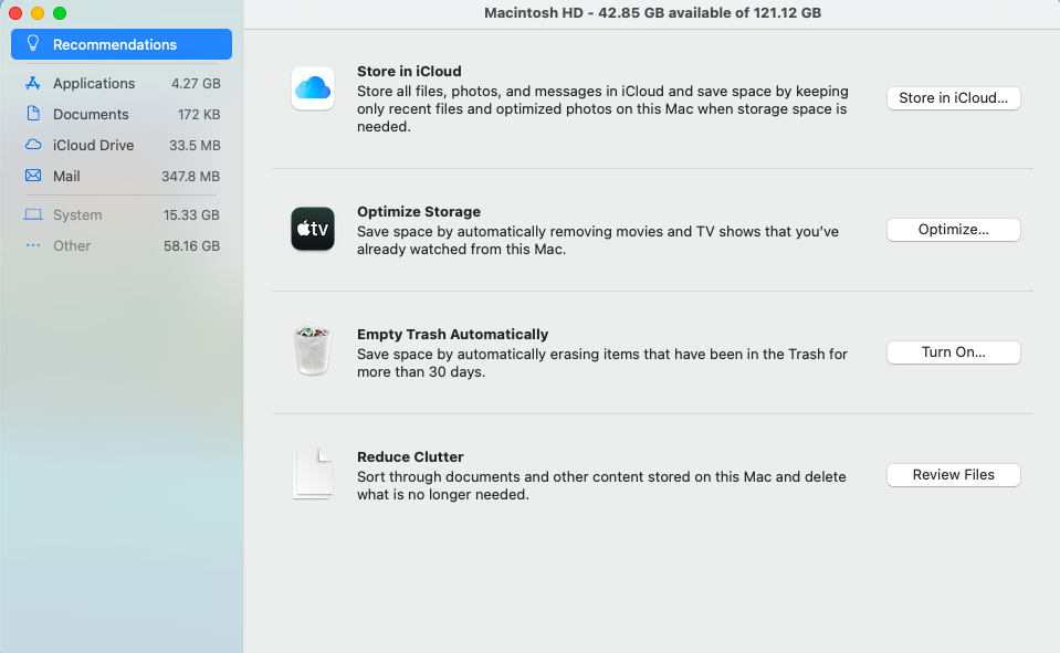 One is guessing the issue is Really the Capacity of the Internal drive and might be the tiny 128 GB SSD. Though sold by Apple and IMHO should have started with 256 GB - sorry to say, it is what it is !!