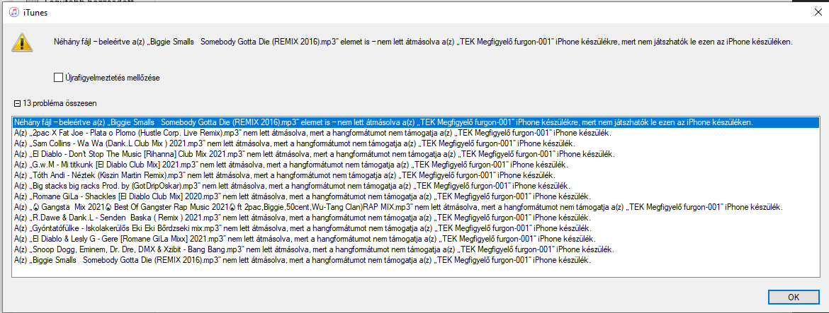Yesterday, I wanted to import songs to my iphone using iTunes on Win 10. I could do it 4-5 months ago, but now I'm not able to do this, because it says "cannot play this song on this iphone"