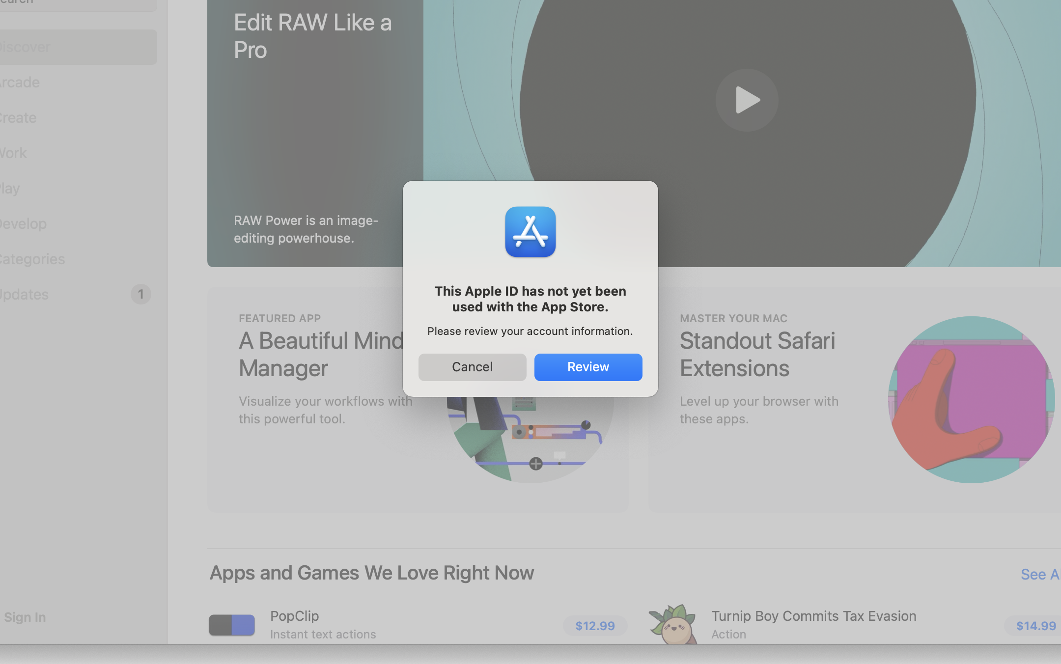 when I try to sign in App Store then it is saying this Apple ID has not been used with the App Store please review.pls tell me how to fix it