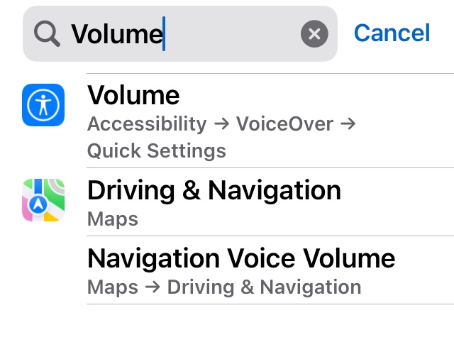 Newly updated 15.2.1 does not return the navigation volume feature. Search in Settings still shows the setting, but the results simply land in Maps’ settings.