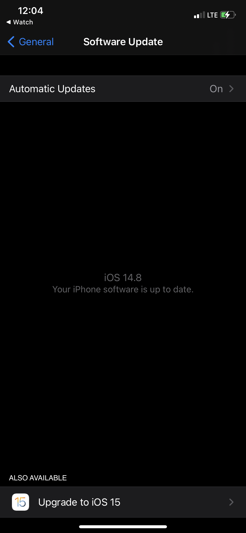 Although you are up to date on iOS 14.8 you are not upgraded to iOS 15