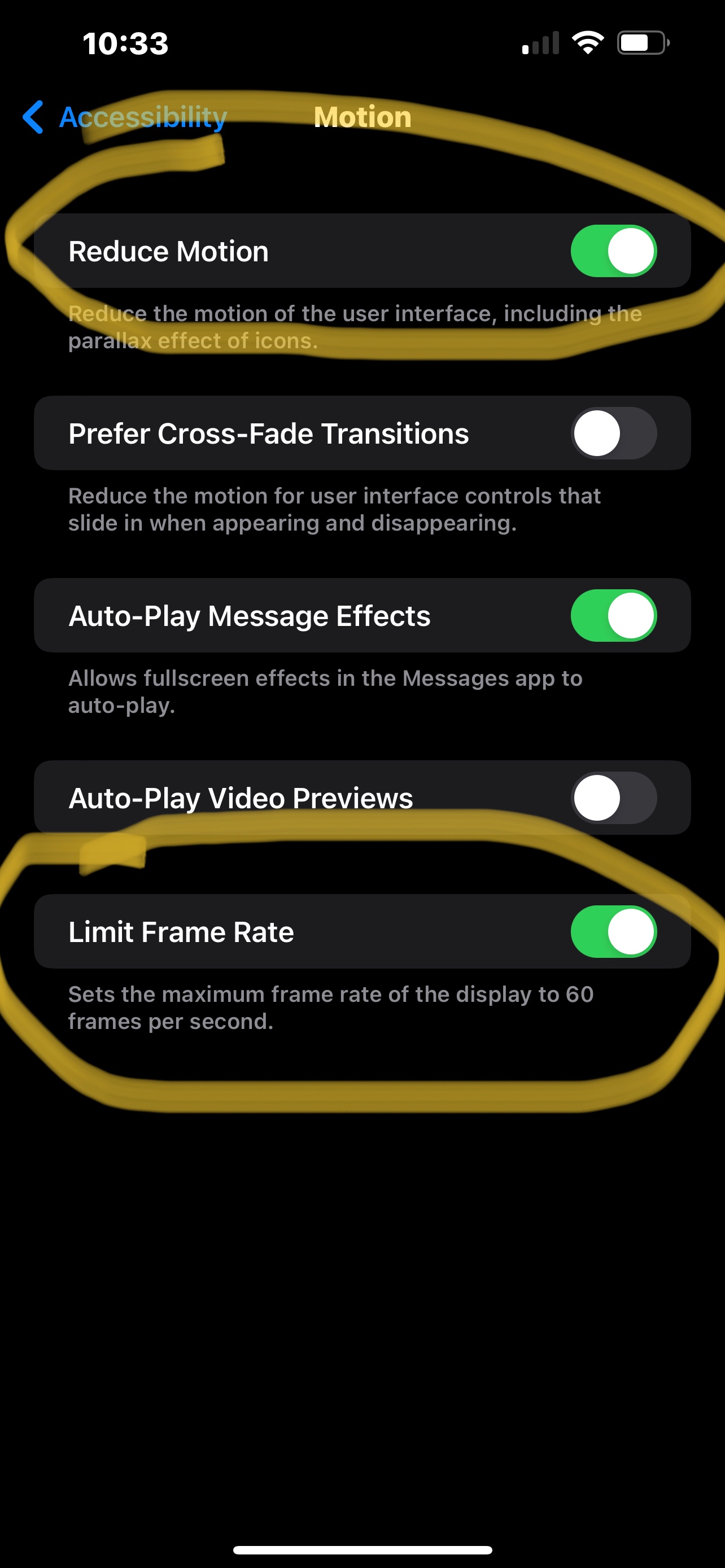 if that is NOT enough and it still gives you motion sickness or you want the motion to remain but still want to reduce the frame rate you you can turn ON Limit frame rate which will reduce the frames to 60hz. Although this completely removes the purpose of using the Pro Motion feature with the 13 Pro/Pro Max I would rather you remove this additional feature than be sick just from simply using your phone.
