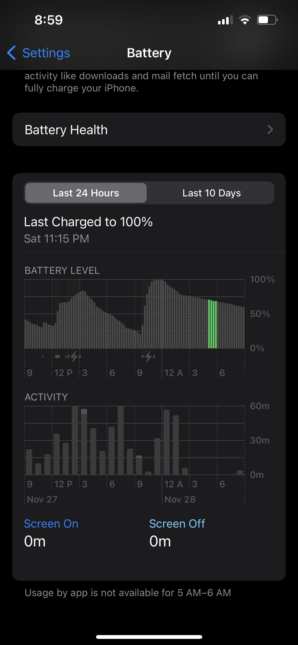 But still most of the days the battery history chart in iOS would show gradual decrease: from midnight to 6 AM even though there was no app activity whatsoever.