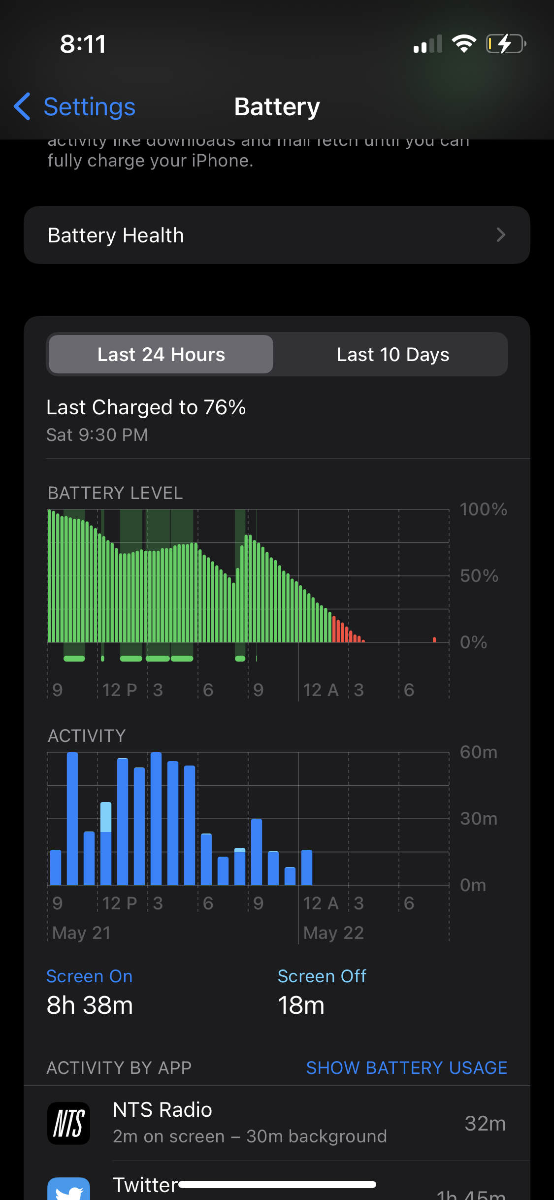 But still most of the days the battery history chart in iOS would show gradual decrease: from midnight to 6 AM even though there was no app activity whatsoever.