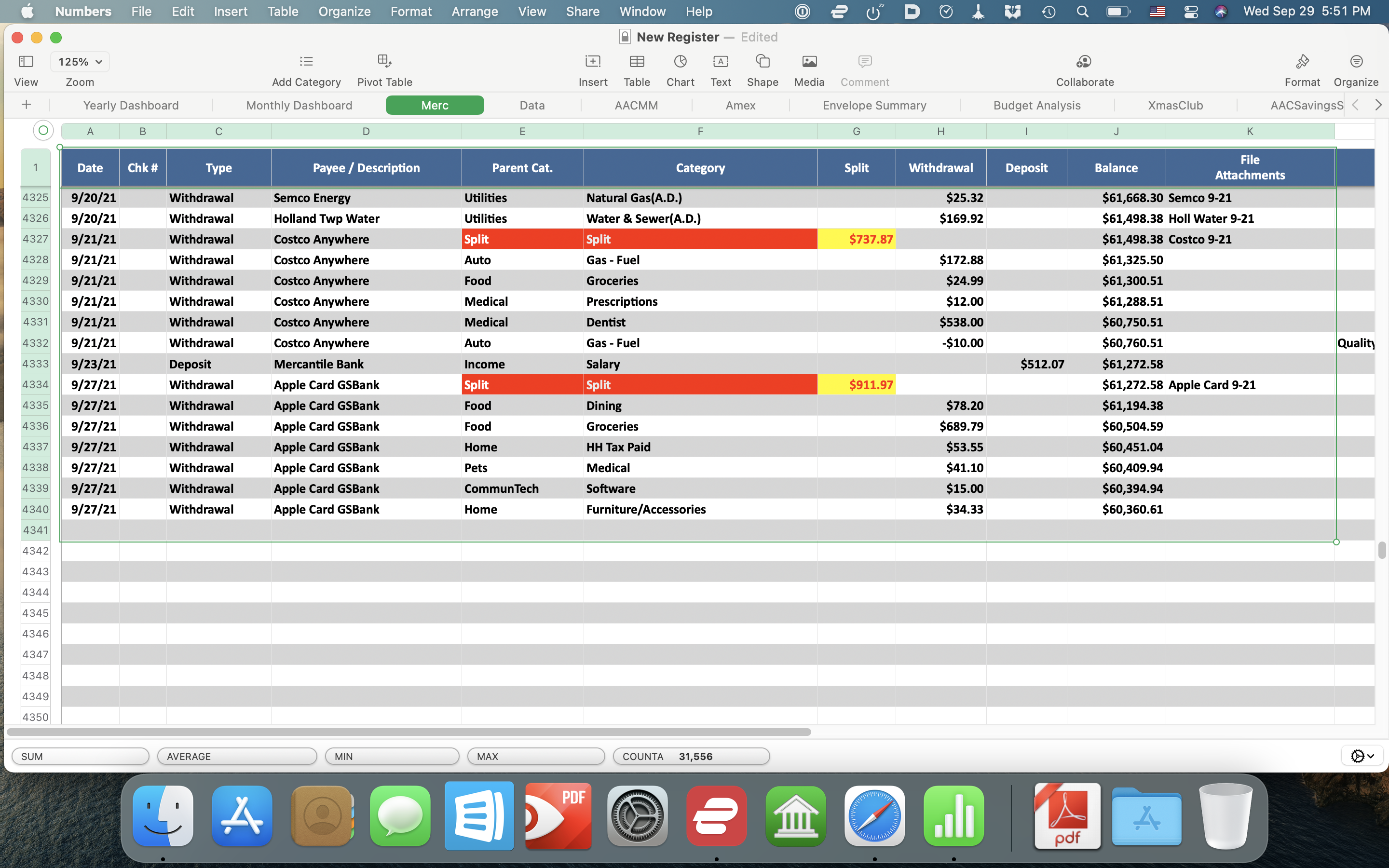 Table 1 represents your merc account table. The values in column J are for demo purposes only. Each is the Sum of the row numbers (minus 1) above it. The two darker cells in2 of Table 2, and has the same goal as the one in B2 of your Account Balances table.