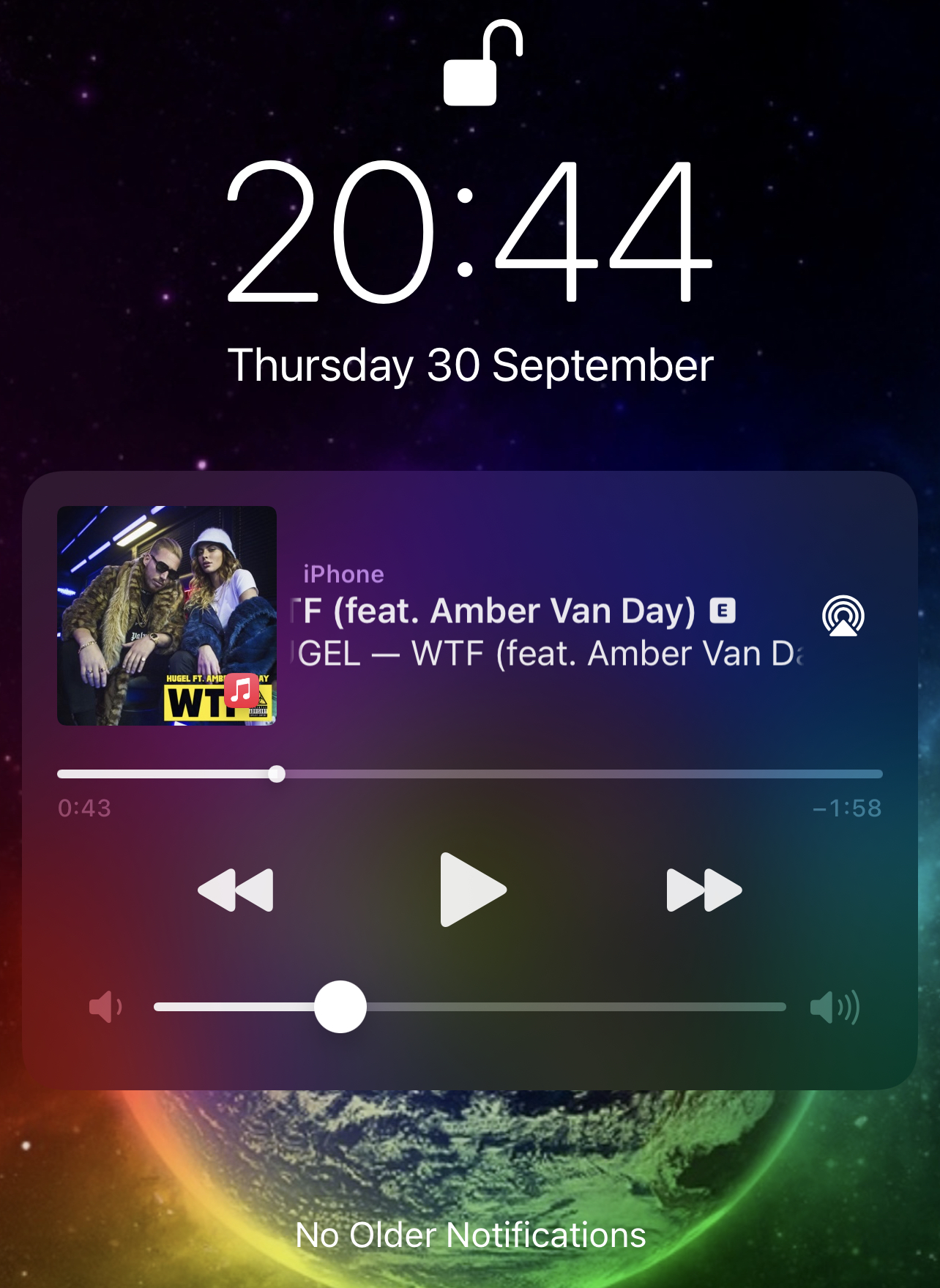Expecting: Music notification (control) not visible on Lock screen and Notification center.