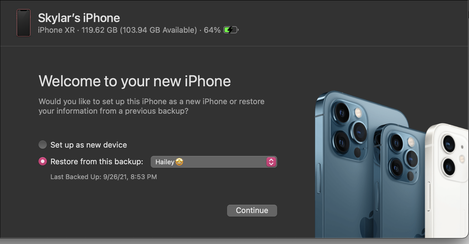 When you back up each iPhone to your Mac, it will create a separate backup of each device’s data. The backup of both devices will be labeled by the name of each iPhone on your Mac. Just make sure they have different names for ease of maintaining backups.