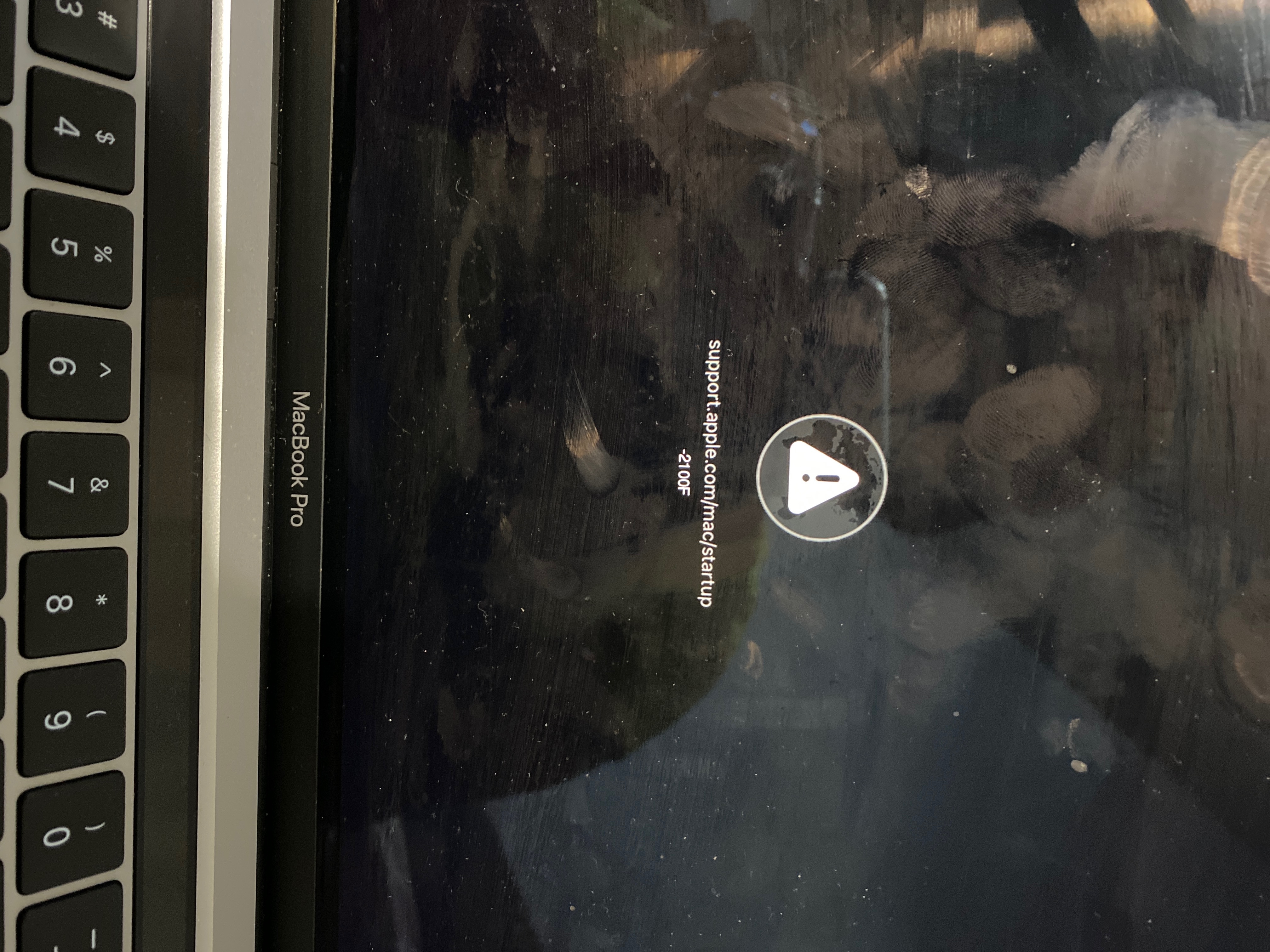 Starting up computer with a flashing folder with the ? Sign on it. I've turned it off and turned on again but using CMD + R. Turns on again with a spinning globe saying"internet recovery this may take a while." Waiting for about 10 minutes before iit is a still globe with a caution sign. At the bottom it says apple.com/support -2100F.