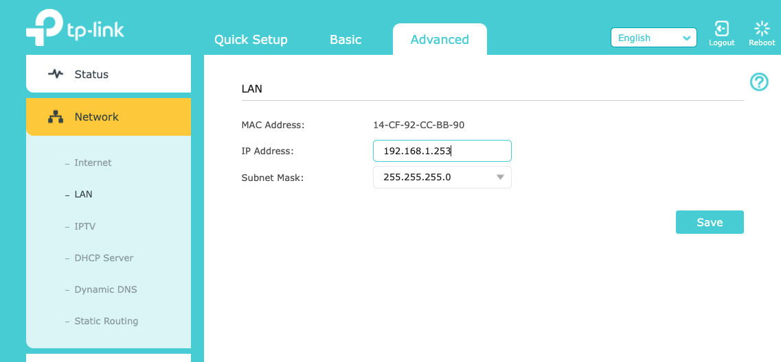 You can then access the TP-Link on the network at the ip you set.. 192.168.1.253.