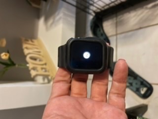 the watch is working but don't show the selected face instead it has a very small dot in the center with a tiny smaller dot running around it but when you press the side buttons it shows the menus