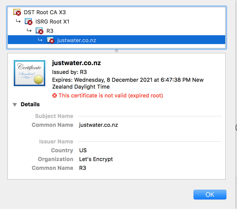 BTW, the clock has the same system time as the Surface Pro to the second, I have emptied caches and have actually deleted and reinstalled Chrome. There are no random certificates in keychain, see below and the problem exists in dark mode too. So none of the usual suggestions in Google searches have worked.