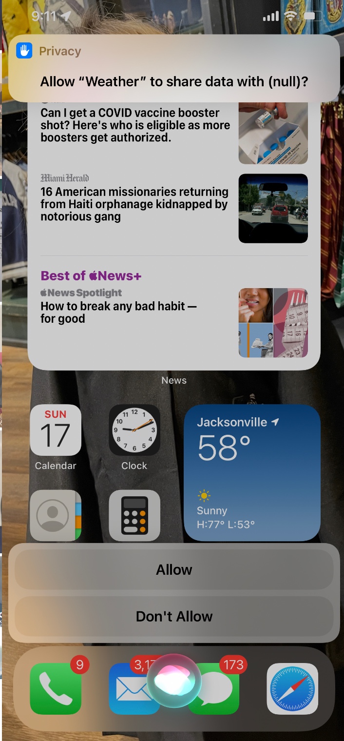 "Allow to share data with (null)" with xfinity stream app on iPad iOS 15