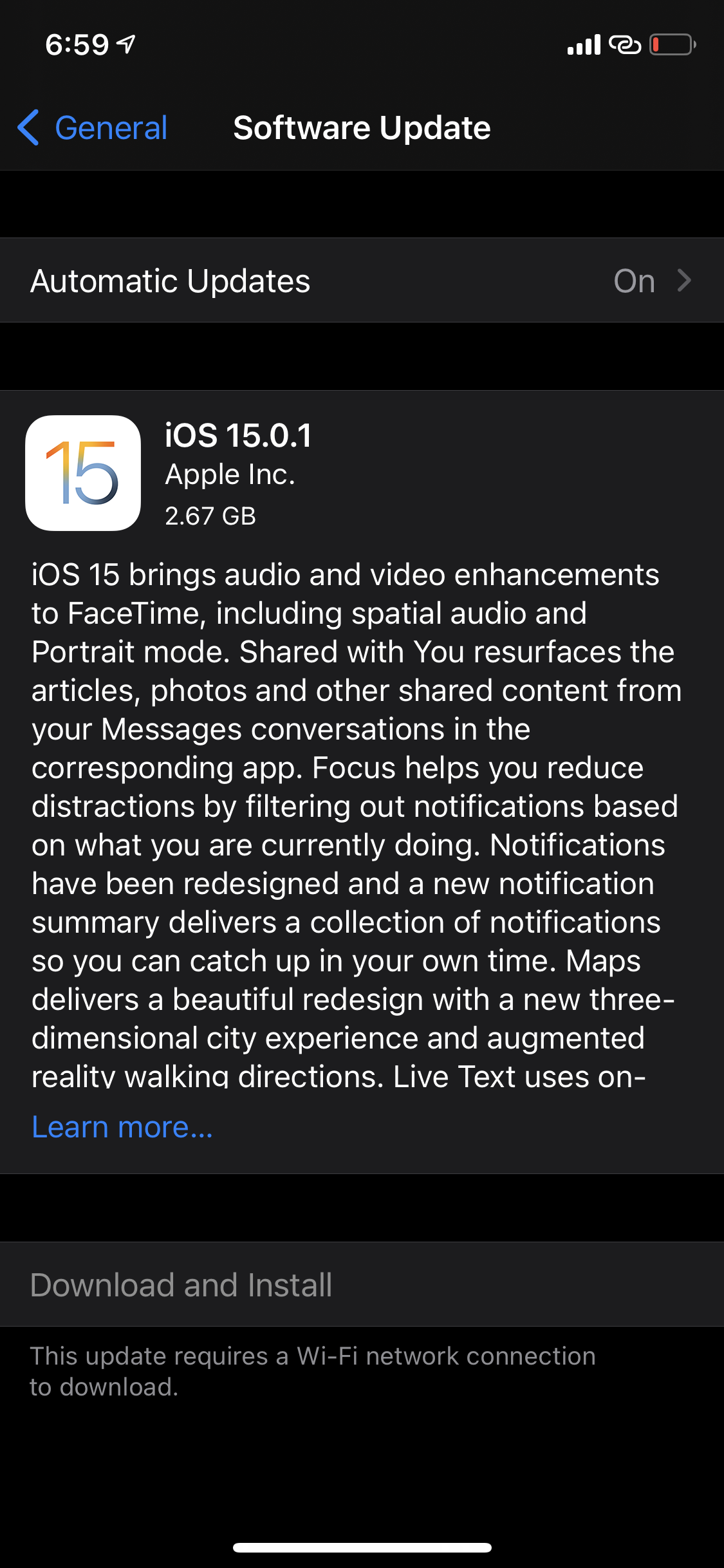 There’s a software update ios 15 for my iphone x ,but it’s asking for wifi . even when i’m connected to wifi it’s still asking for wifi and the download and install option remains faded