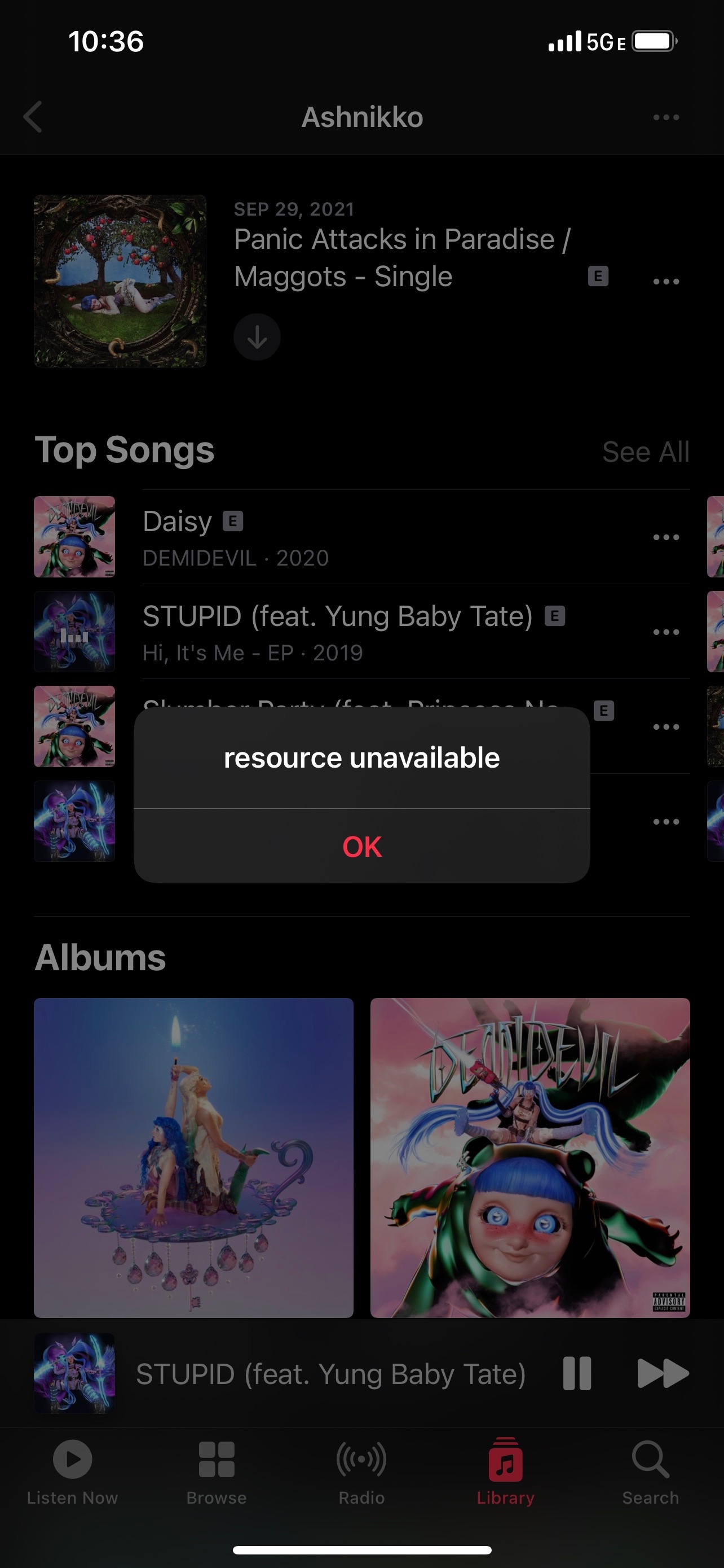 Anyone know how to resolve the “resource unavailable” error in Apple Music, using iOS15?