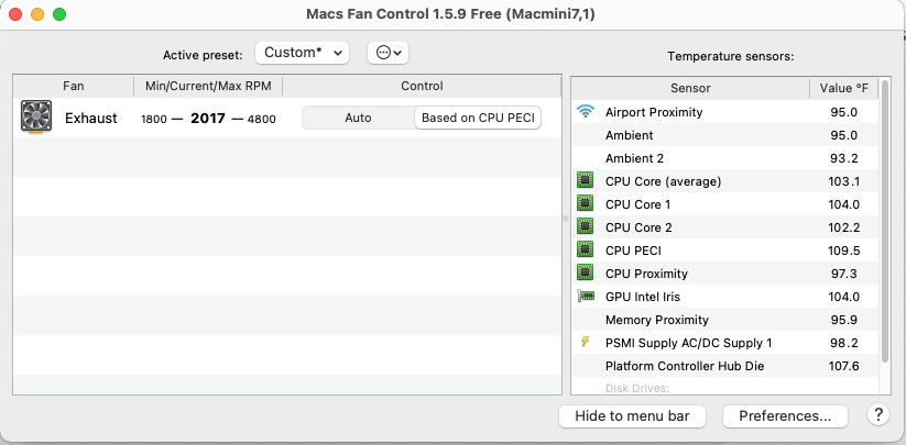 I just bought a new Mac Mini in June. Specs are below. It seems to get unreasonably hot to the touch and then performance suffers. I bought a laptop cooler, but it doesn't seem to do much good. It does have a couple of external drives hooked up to it, but the space around it is pretty clear. Does anyone have any tips? Is this a known problem with this machine? I spent a good bit of money on this so it is highly disappointing and I'm also concerned how much this will shorten the lifespan of the device - I have had my iMac for 9 years and it still runs fine. Thank you for any ideas.