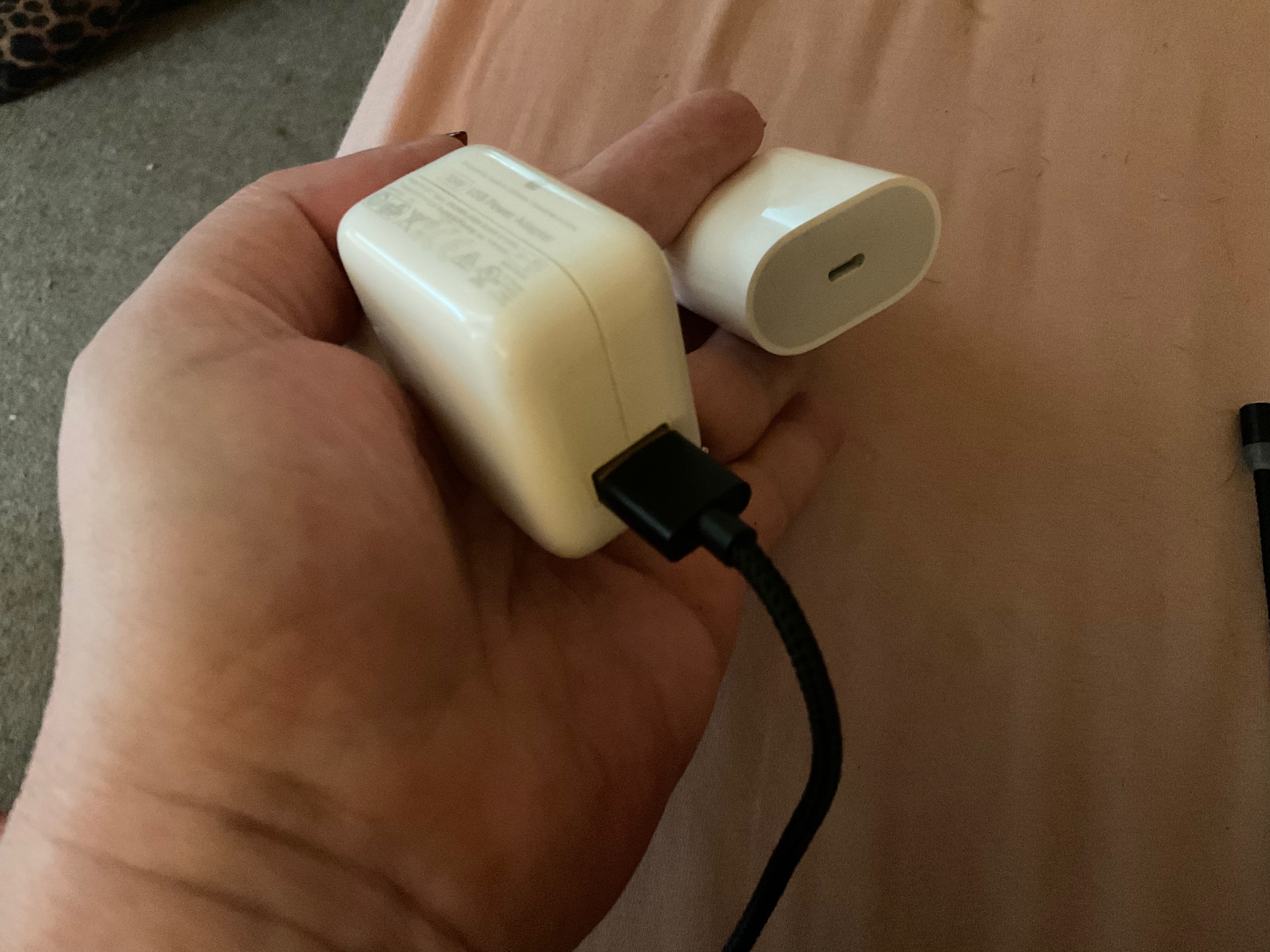 Your iPad Air4 was supplied with a 20W USB-C Power Adapter and a USB-C to USB-C charging cable. To charge your iPhone with the USB-C Power Adapter, you simply require a USB-C to Lightning cable: