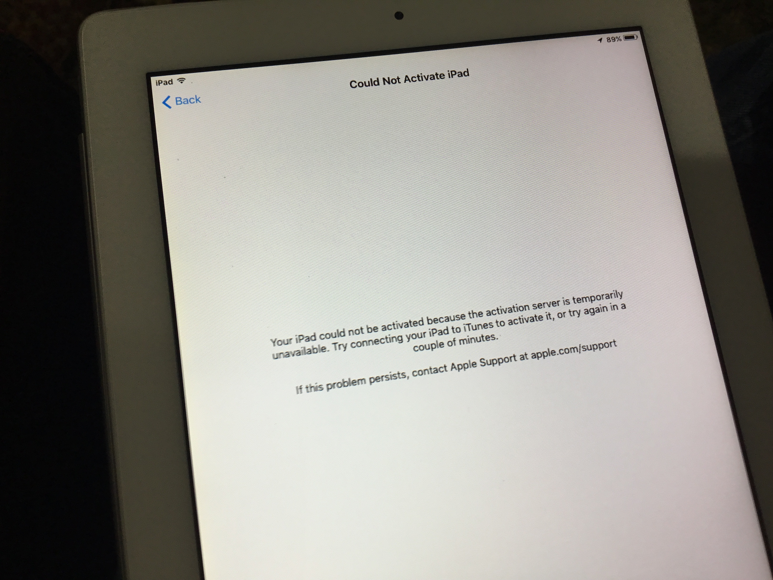 Can't get iPad to activate. Get the following error message: