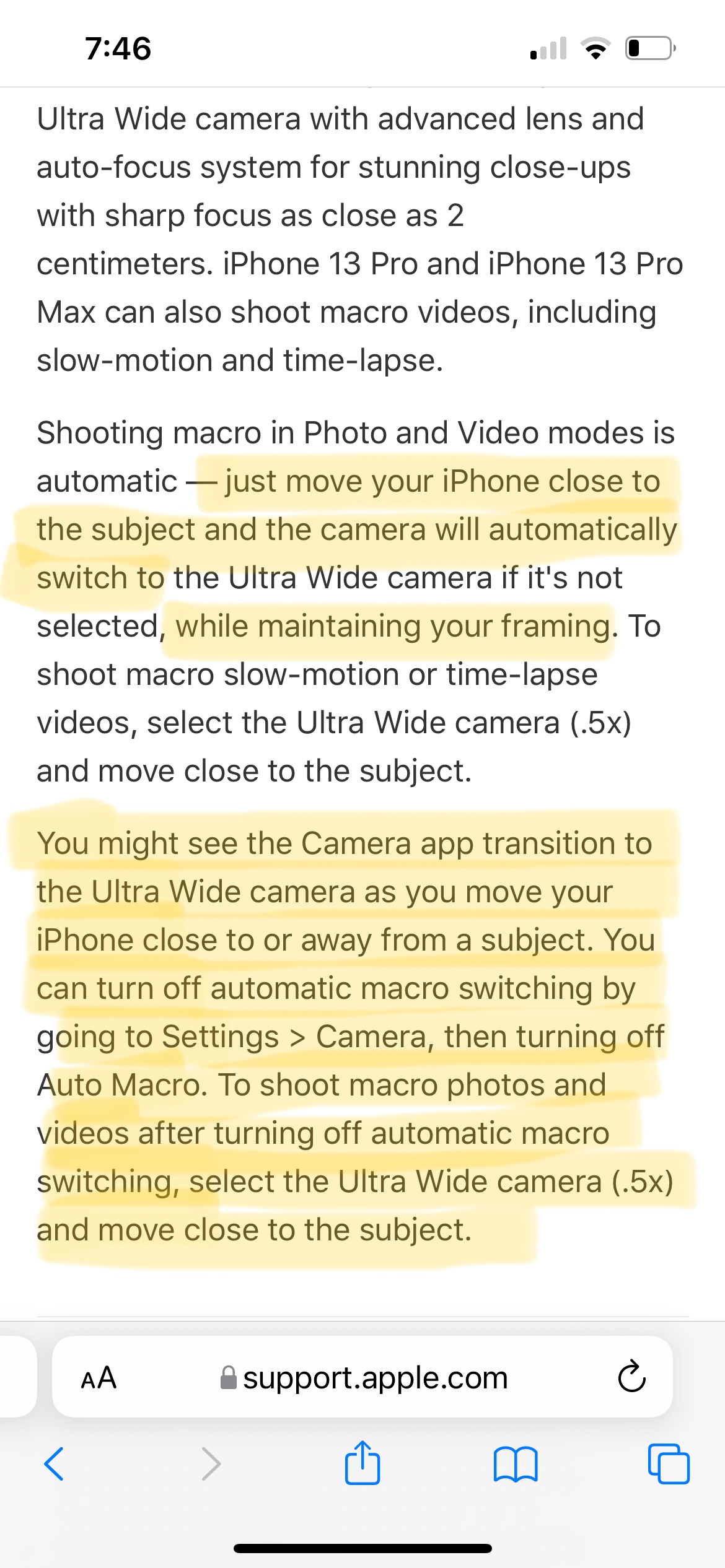 Apple says - first highlight, that the camera switching while “maintaining framing”. But it doesn’t on my phone (and for a lot of the other people commenting here). Does your camera maintain the framing you chose when it switches back and forth to macro?