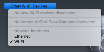 In the airport utility selection for ethernet is under Other Wi-Fi Devices.. which makes no sense at all. Ethernet will only show up when it is connected and working.