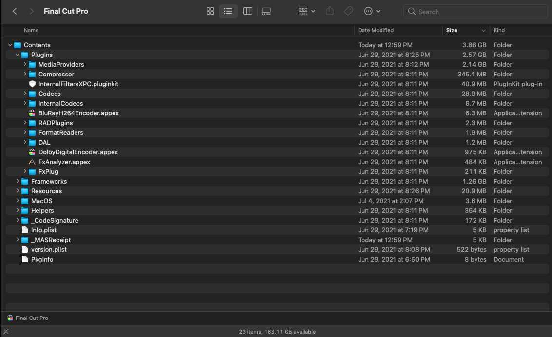 1) Why are my Titles, Transitions, Generators, Effects loading/coming from the Application -> Final Cut Pro -> Show Package Contents section instead of a folder by itself located somewhere else (even after I created a Motion Templates folder and named the files for example titles.localized and so on...