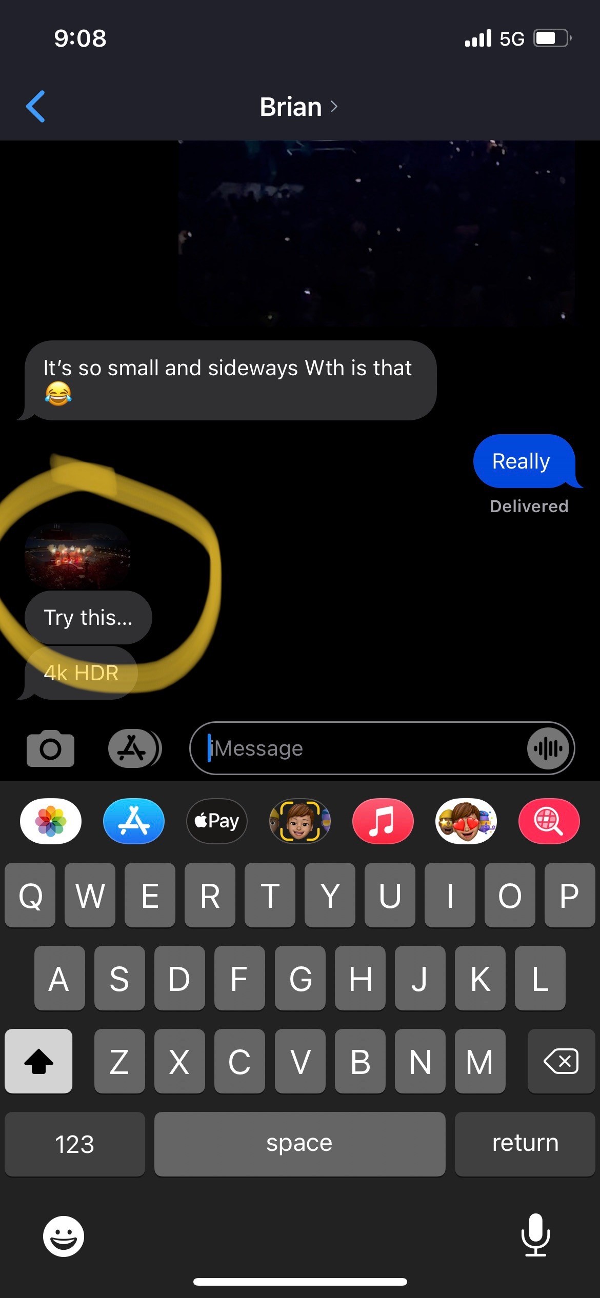 Sending compressed video only on 5g phones. Gives the option to download the videos for the recipient and the download is still compressed. Also, longer videos force you to shorten them as if you were sending MMS message. My iCloud Photos is set to "Download and Keep Originals", my Camera is set to film 4k 60fps video. I've talked to Apple Support over the phone and asked them to report to the engineers at Apple. This is a serious downgrade from the functionality on 4g LTE, this is a major feature that was essential to iMessage was sending 4k video and this needs to be patched. There is zero settings that will fix this behavior that I, or Apple Support is aware of.