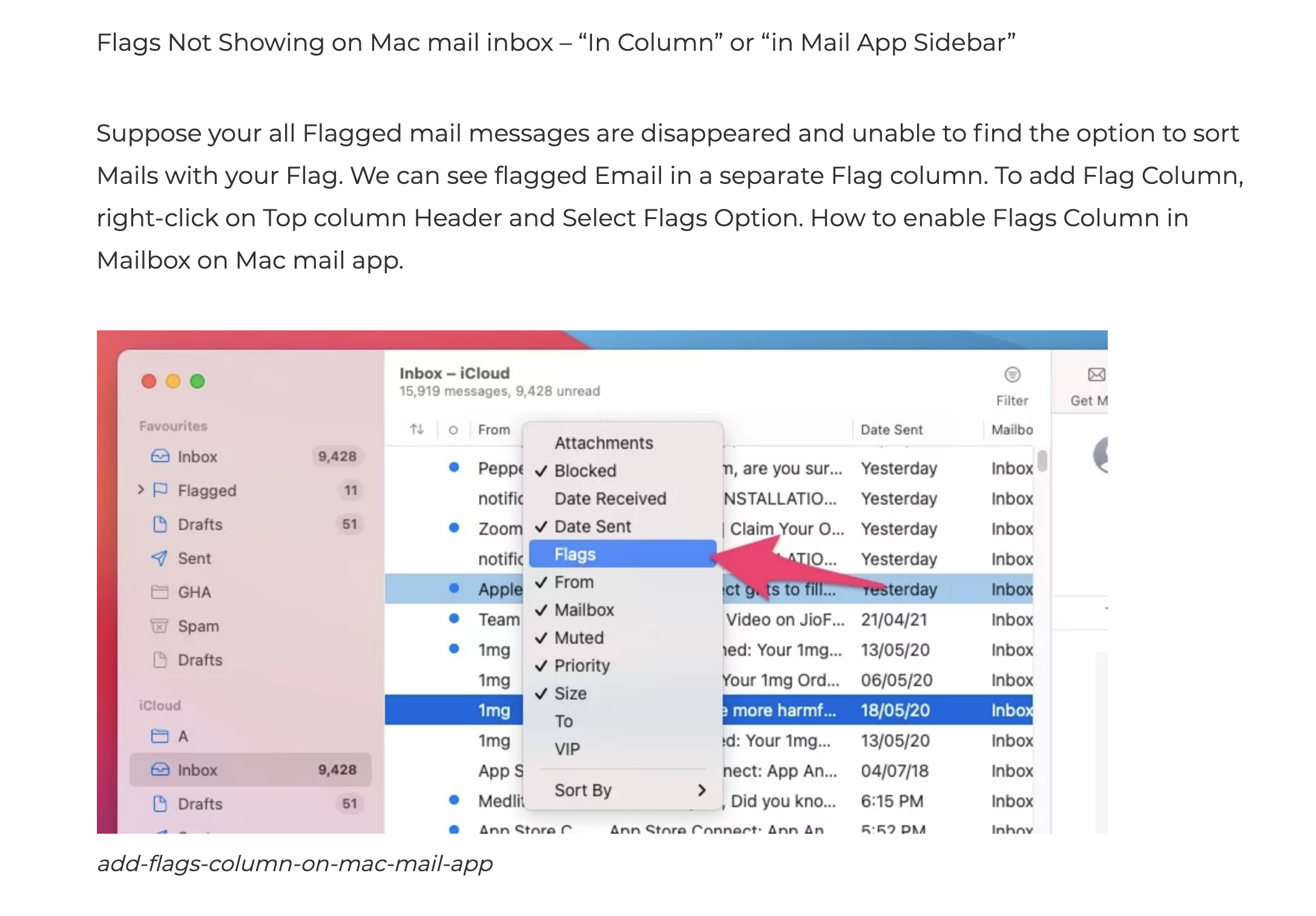 I'm revisiting a discussion from a year ago. Using the latest Big Sur, I flag an email -- and the flag does not appear next to the email header. Nor does it "disappear" into a flagged box on the sidebar. I would be happy with at least getting flagged emails separated, but my emails just sit there, unfledged, unmoved? Has anyone discovered a remedy for this? I have also tried going into "view" and enabling the message filter. I still get nothing.