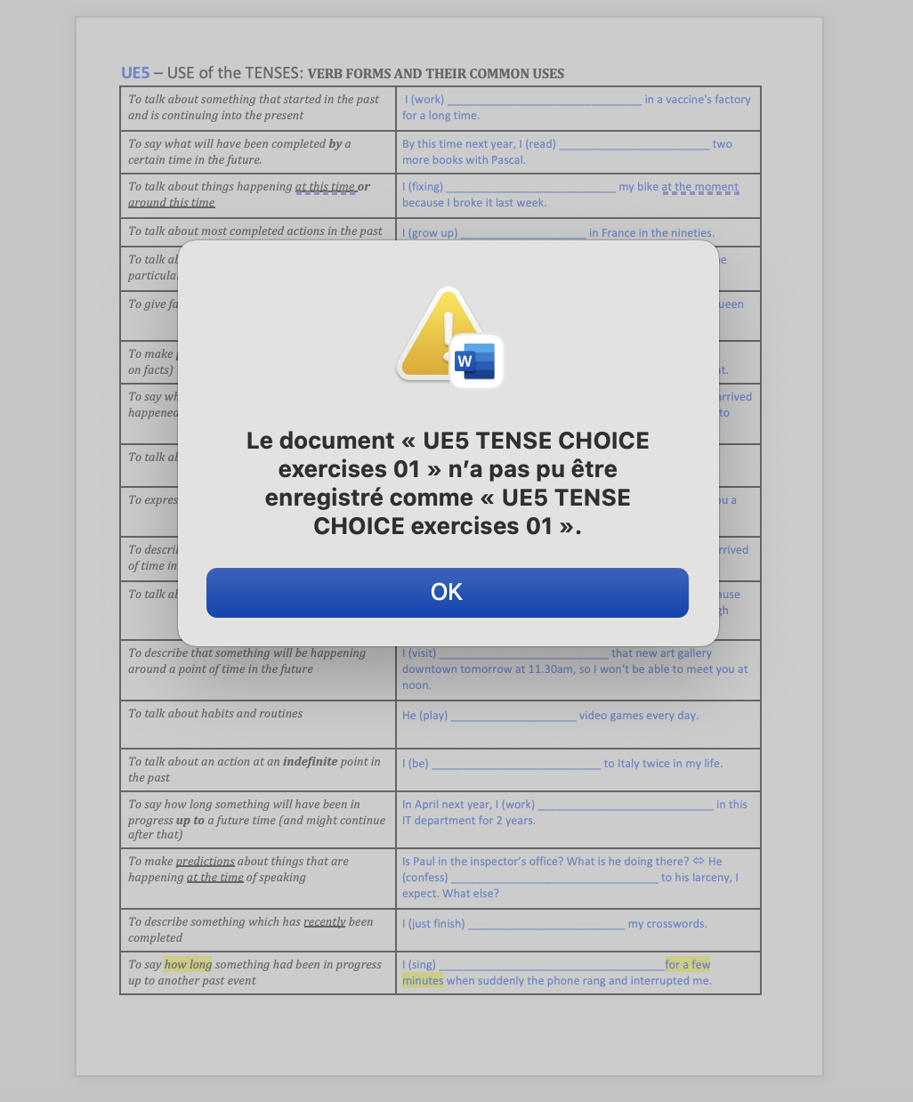 I cannot save a WORD document into a PDF document anymore (for a couple of days now), neither through "FILE > SAVE AS", nor through "PRINT > SAVE AS PDF". When I try to save as a PDF, I receive now an error message saying "the document (name) has not been saved" (see picture). When I try to PRINT, there is no reaction at all. Can anyone help me? Thanks in advance. Pascal