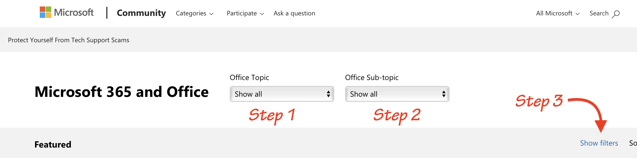 2) Limit answers to Mac topics with the “Office Sub-topic” pull-down.