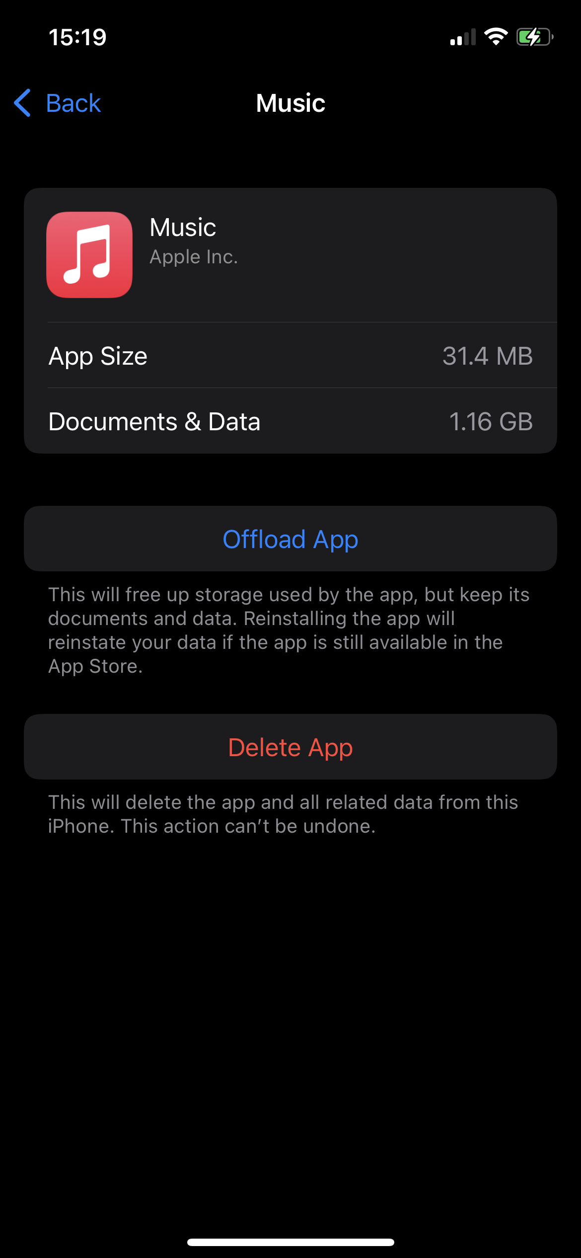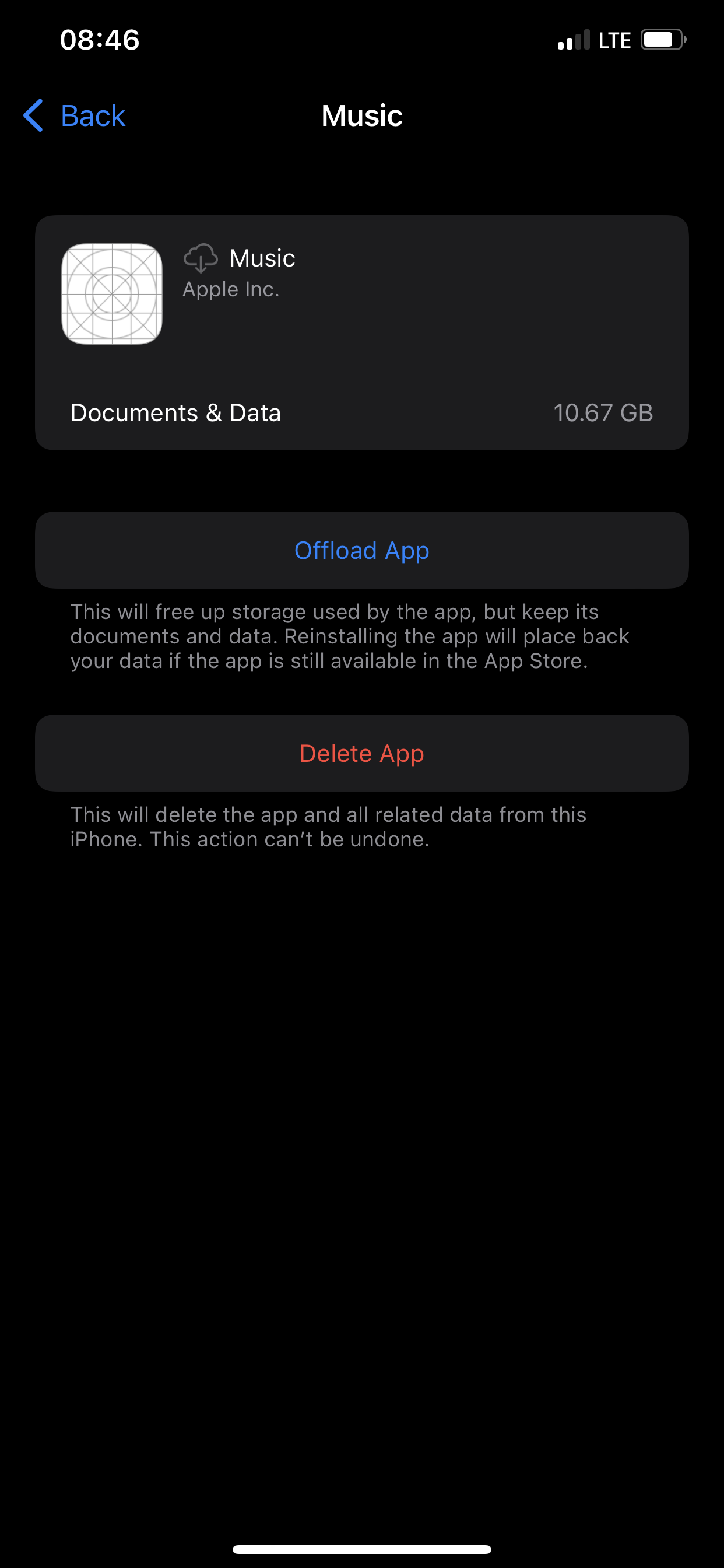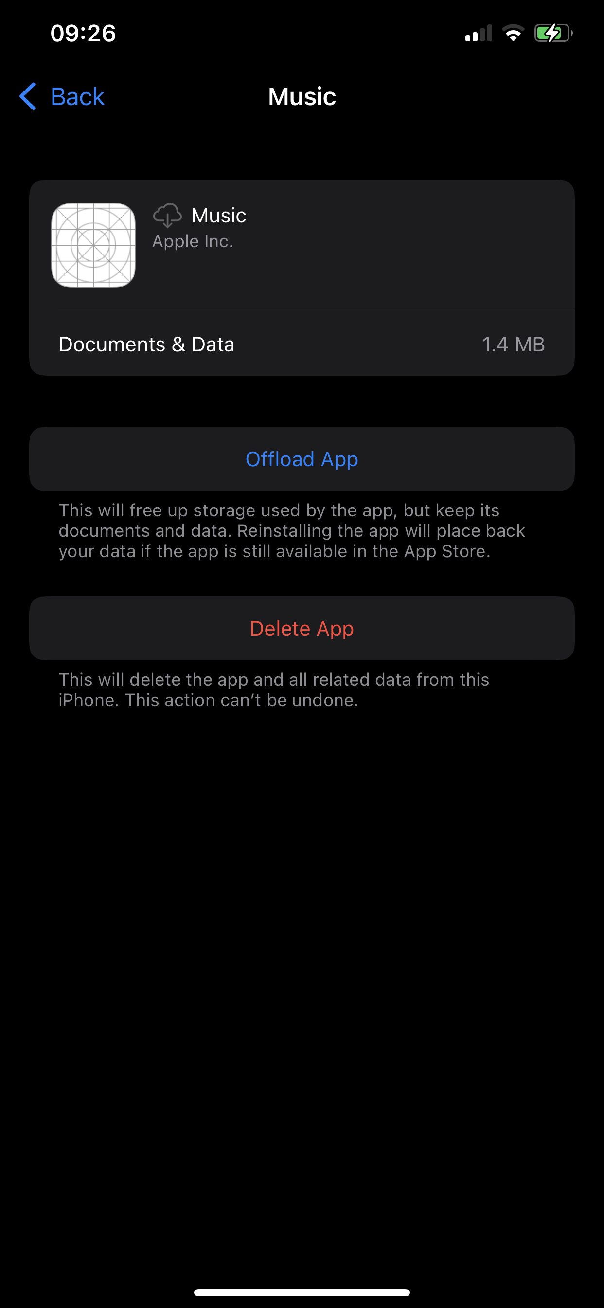 -- Offload the Music app itself (you cannot delete it)