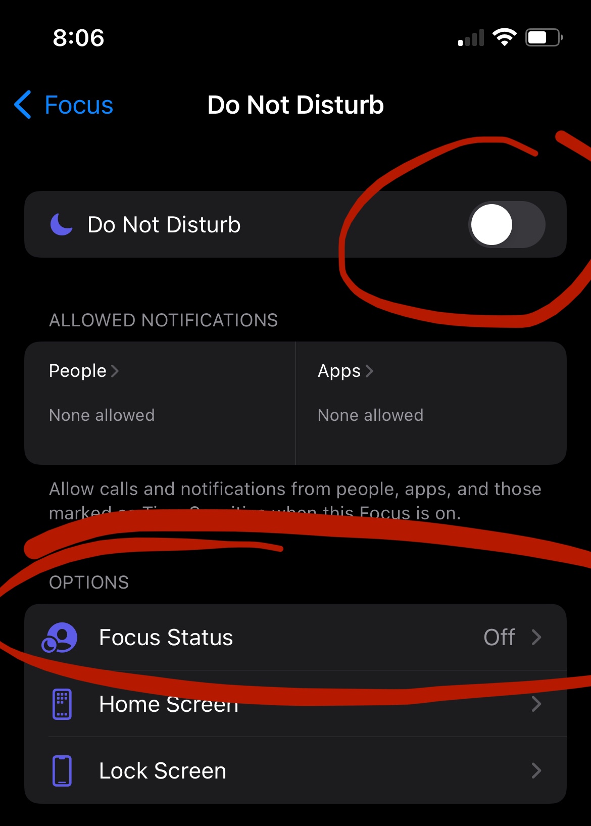 Notification off for phone calls is a different situation. Those are turned off if the person has activated Focus, Is in Do Not Disturb mode or it the ringer has been turned off or if volume is set too low.