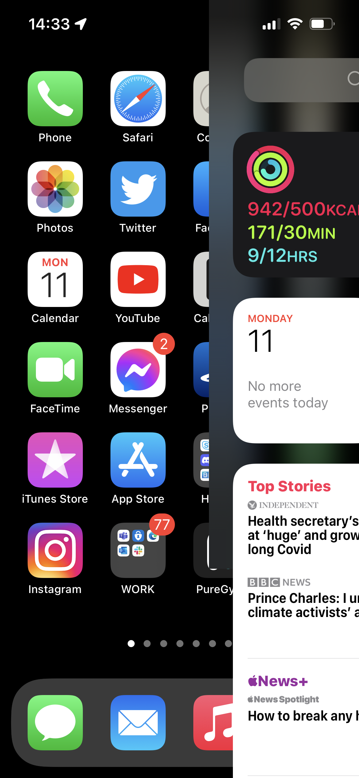 Since switching to an iPhone 13 Pro with iOS 15.0.1 Today View no longer operates correctly.