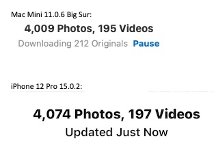 Something is wrong with the updating photos between iPhone and the Mac Mini M1