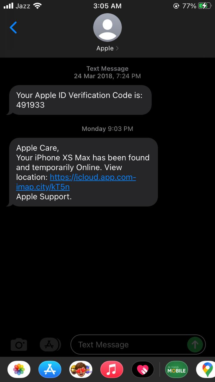 Check this msg send Apple Care. Now I'm click this link I track but my phone are not showing in my Find.