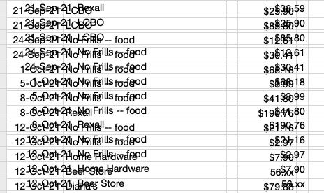 I have a weird thing in a little sheet I use to record spending.