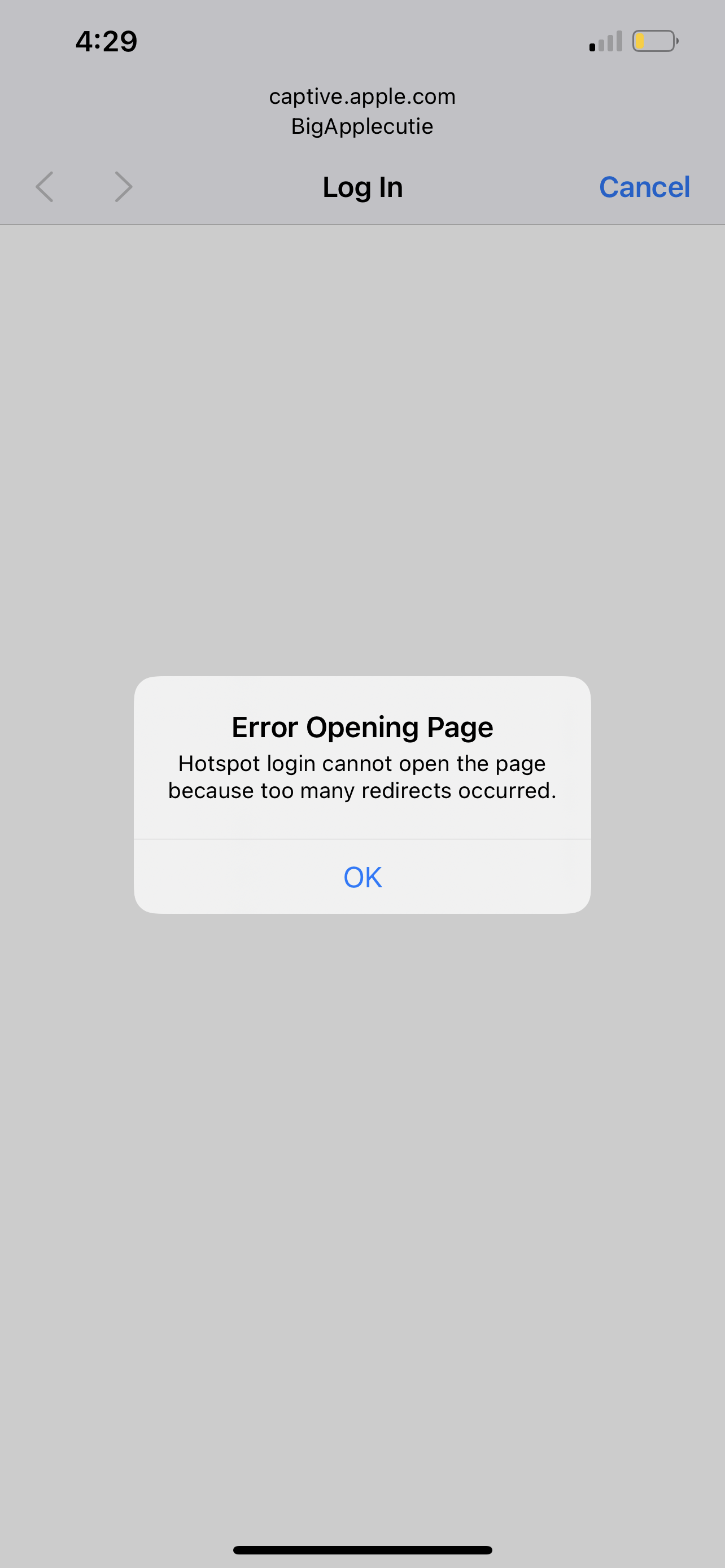 My phone says hotspot login cannot be opened due to may redirects occurred. What do I do now?