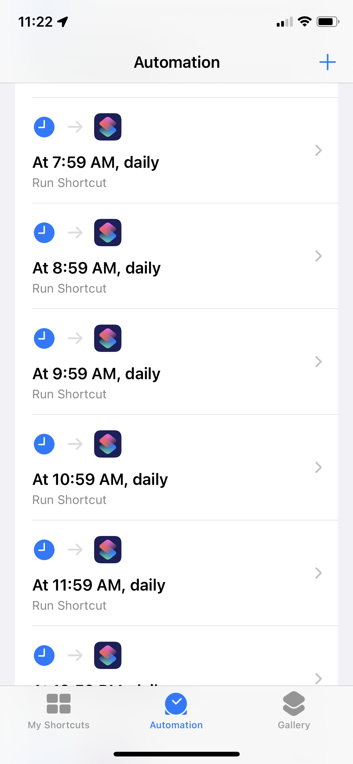 This runs a regular shortcut that changes my wallpaper. As I said, it worked fine except for annoying notifications that appear each hour. At least I've told the system to run the shortcut without asking.