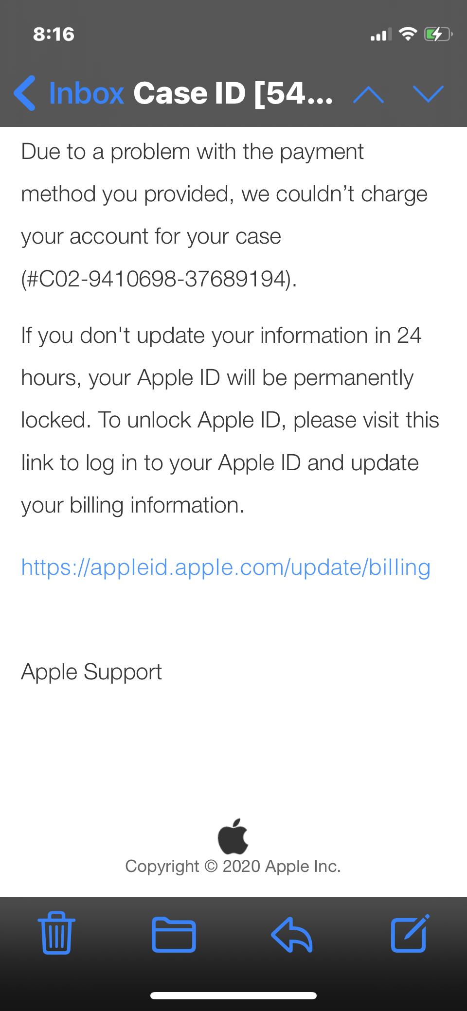 I received an email that says it’s from apple but I think it’s not. It says my apple information is wrong and I will be locked out. ???
