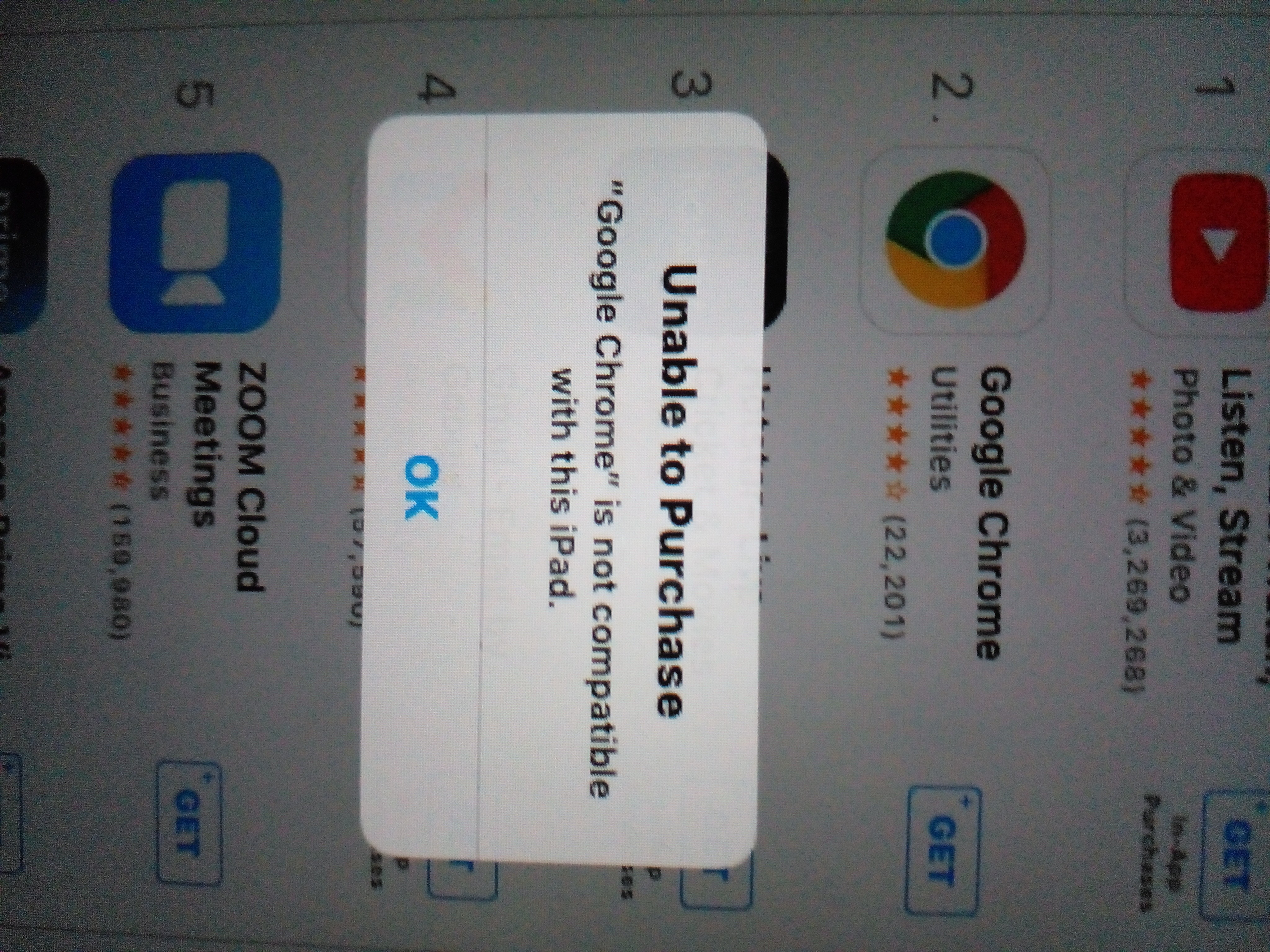 The currently available Google Chrome App requires iPadOS 14.0 or later. Your iPad2 (as identified by the tags appended to your post) suggest that you have an iPad2 with iOS 9.x installed. The Chrome App is not compatible with your iPad.