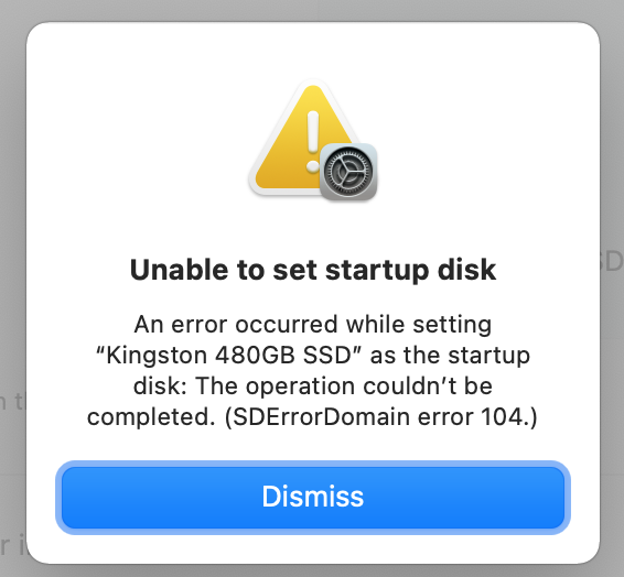 How do I make a bootable startup external SSD? SDErrorDomain error 104.
